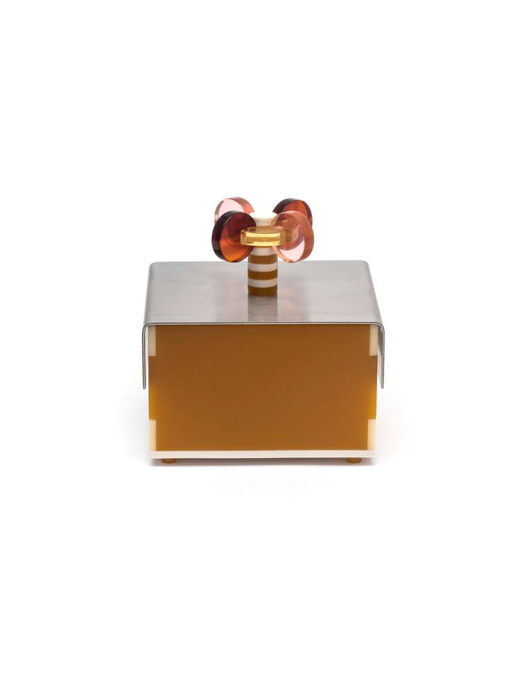 Finn creates objects made of materials like stainless steel and novel cellulose acetate, a natural and degradable biopolymer up-cycled from optical industry discards. All pieces are manufactured and assembled in a small atelier in Buenos Aires.