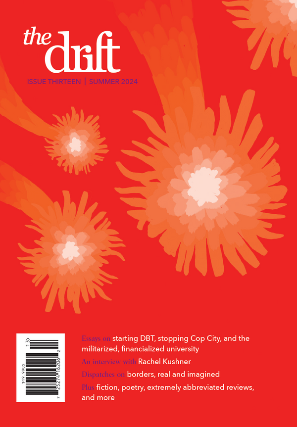 The Drift is a magazine of culture and politics. Founded in June 2020, The Drift aims to introduce new work and new ideas by young writers who haven't yet been absorbed into the media hive mind and don't feel hemmed in by the boundaries of the existing discourse. Published three times a year, their issues feature longform essays and cultural criticism, short fiction, poetry, interviews, dispatches, and extremely abbreviated reviews.